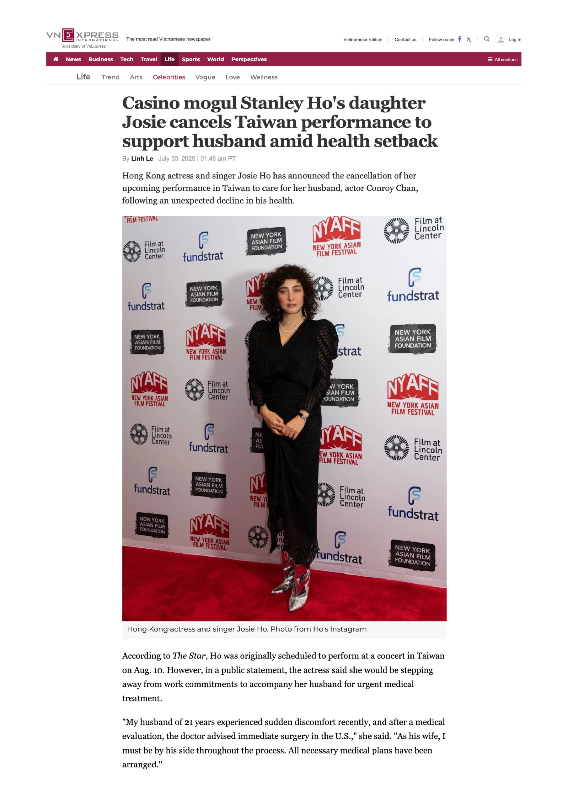 20250630 Casino mogul Stanley Ho’s daughter Josie cancels Taiwan performance to support husband amid health setback – VnExpress International-01