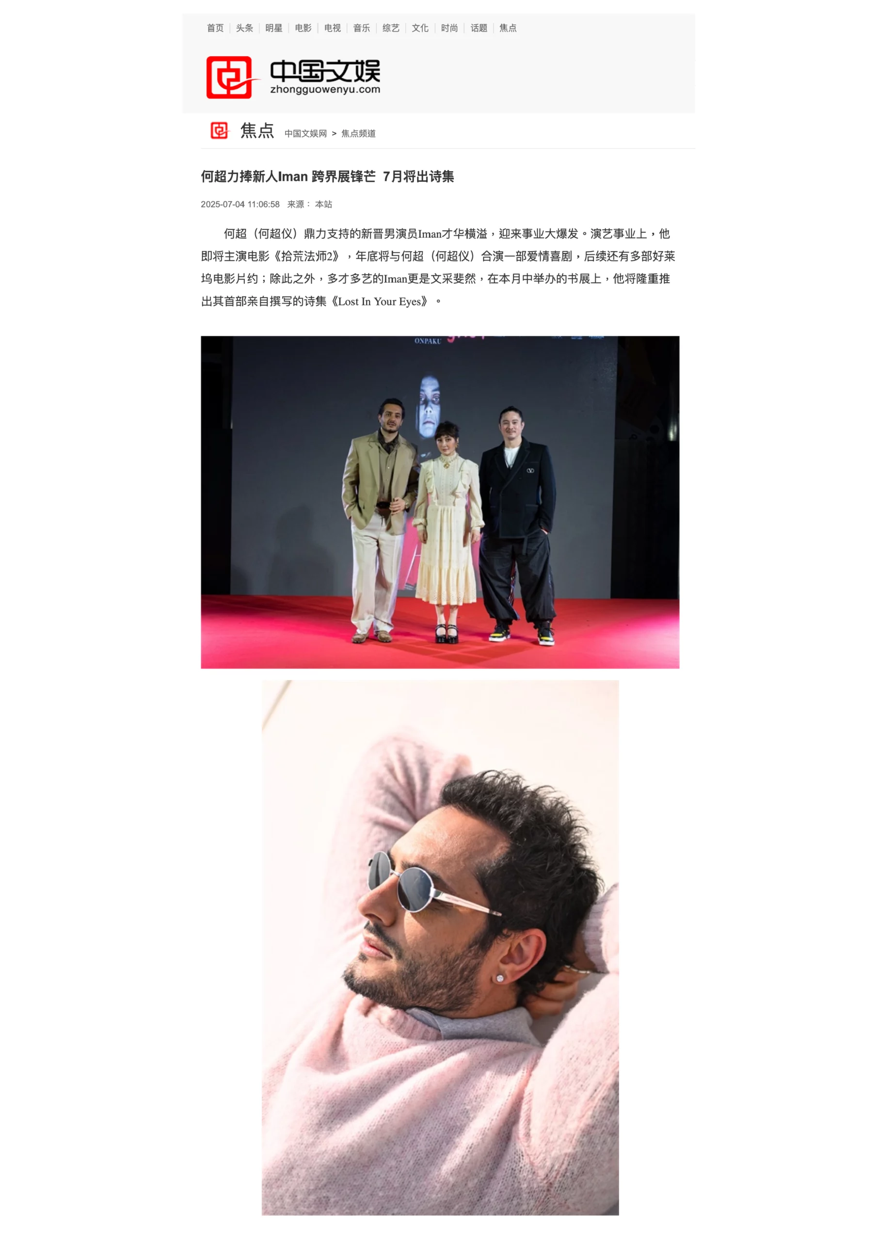 20250701 何超力捧新人Iman 跨界展锋芒 7月将出诗集|中国文娱网|-01